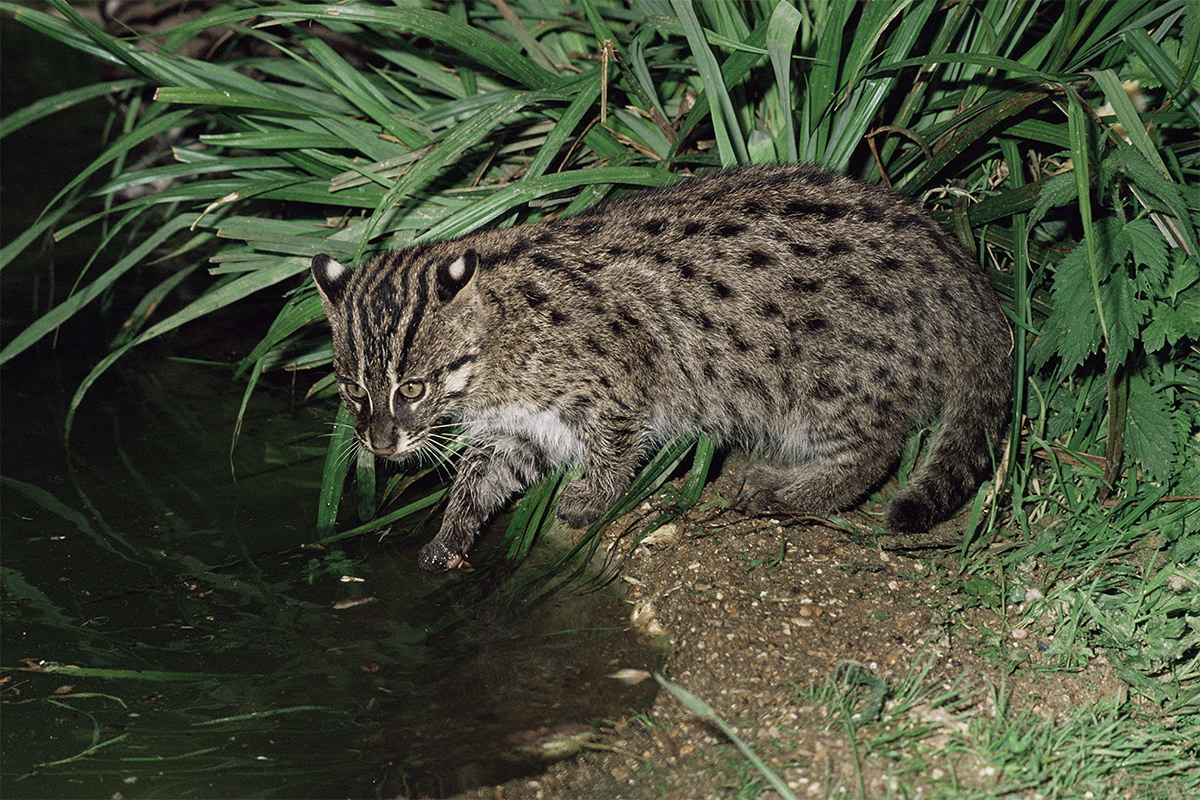One of the more noted characteristics often associated with the fishing cat is webbed feet. However, today its known that the webbing on this cat isn’t much more developed than the bobcat with even domestic acts having a slightly webbed paw. More interesting is the fact they have semi-retractable claws. Whilst fishing cats can swim and even dive after fish they have also been seen to gently tap the surface of the water mimicking the ripples of an insect. Then, once the fish has come into striking range, it will use its claw to hook the fish out of the water. Fishing cats, along with Cheetahs, are the only cats to have this feature.