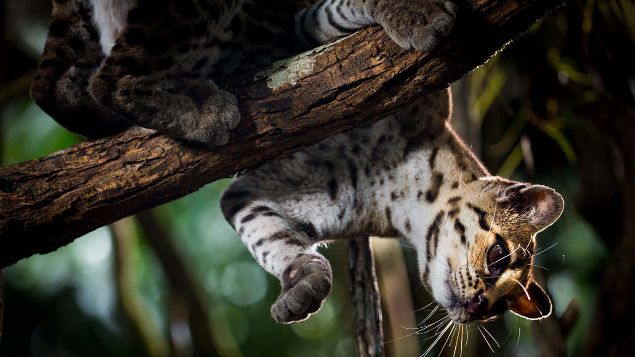 To investigate what some of these purposes might be it’s worth looking at a few individual species and how these specific cats use their vibrissae to aid in hunting and in avoiding being prey. A good example of this would be nocturnal gymnast the margay. Jumping high in the treetops from branch to branch in near pitch black conditions takes more than just excellent night vision. Amazingly Margays use their vibrissae to navigate between branches by processing subtle vibrations, picking up air currents flowing around objects, therefore, allowing them to accurately judge distances. Often they will manipulate the vibrissae to face forward, taking in as much information as possible, especially when hunting in near total darkness.