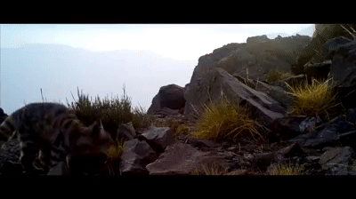 Much is still unknown about the mysterious Andean cat however we now believe they are solitary cats and mostly nocturnal hunters with crepuscular activity with dusk and dawn being important hunting periods given that it coincides with the activity peaks of the viscachas it preys upon. Their home range seems to depend on the availability of viscachas. Only a small number of cats have ever been radio collared, of that has been published one female in the Bolivian Andes was studied for seven months and her home range was estimated at 65.5km² .